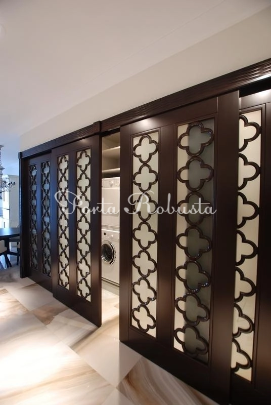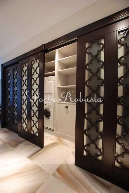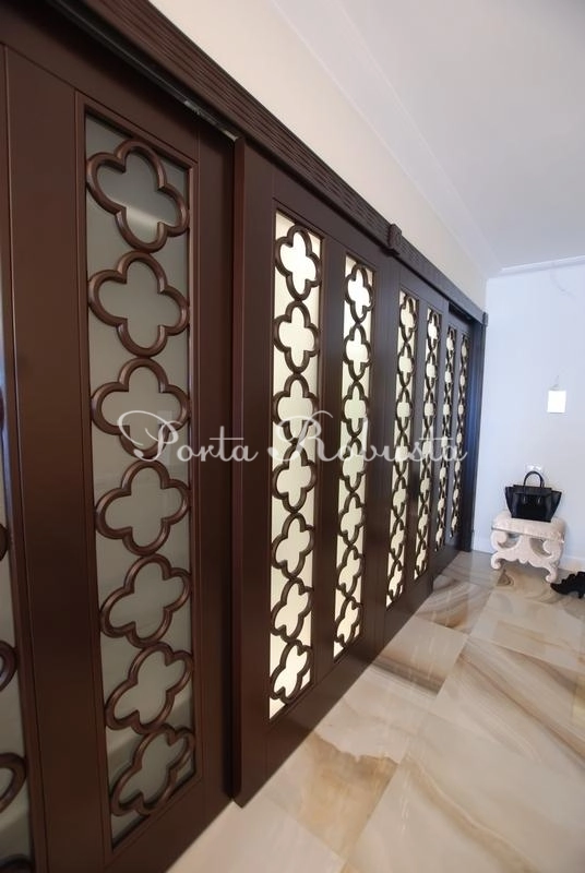 Раздвижные двери состоят из 4х створок, каждая из которых 120 х 2300 мм.